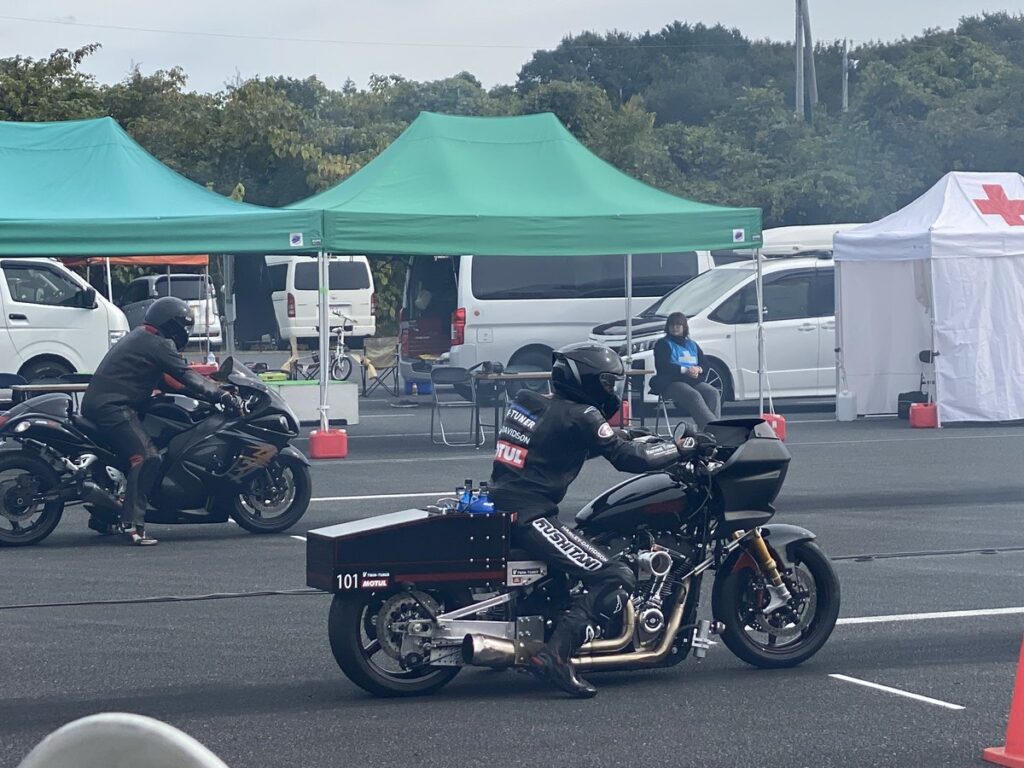 レース事故で破損したフェアリング、ハンドル、インテーク、エキゾーストの修理と左右の重量バランスの改善のほか、GSX1300Rのフロント周りに合わせるためのリヤ周りのデチューンで安定して走ることができました。